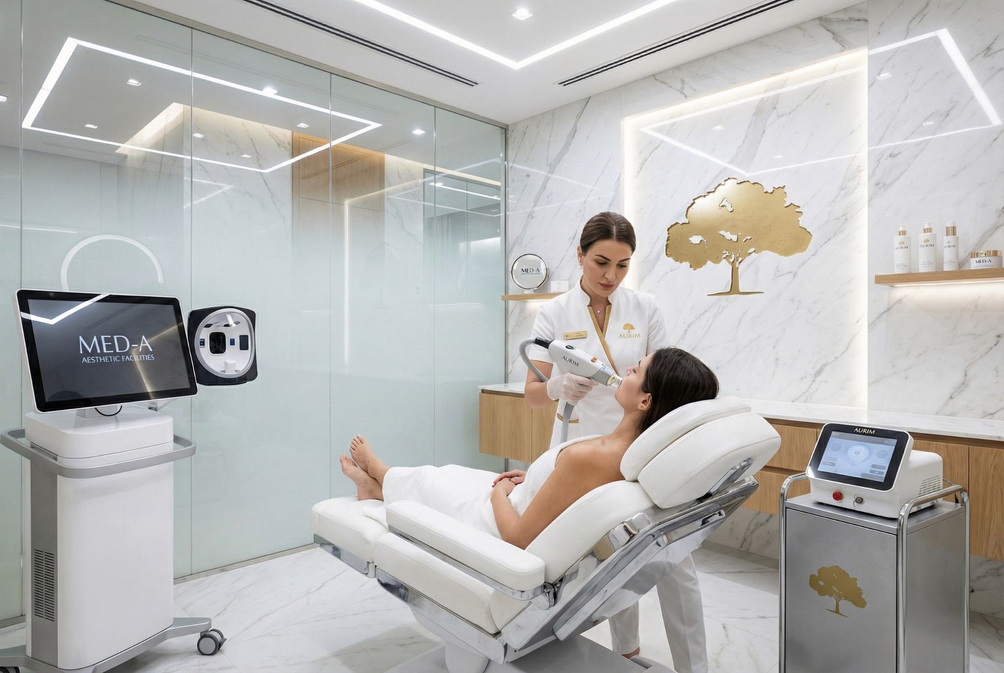 Professional cosmetology services including skin care, beauty treatments, and specialist aesthetic services delivered through AURIM, MED-A facilities and Golden Tree mobile wellness teams.