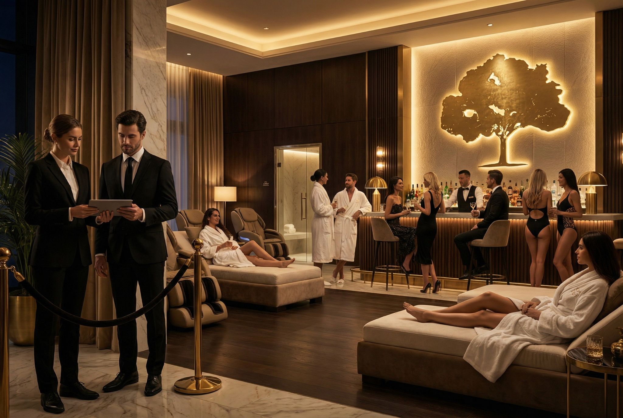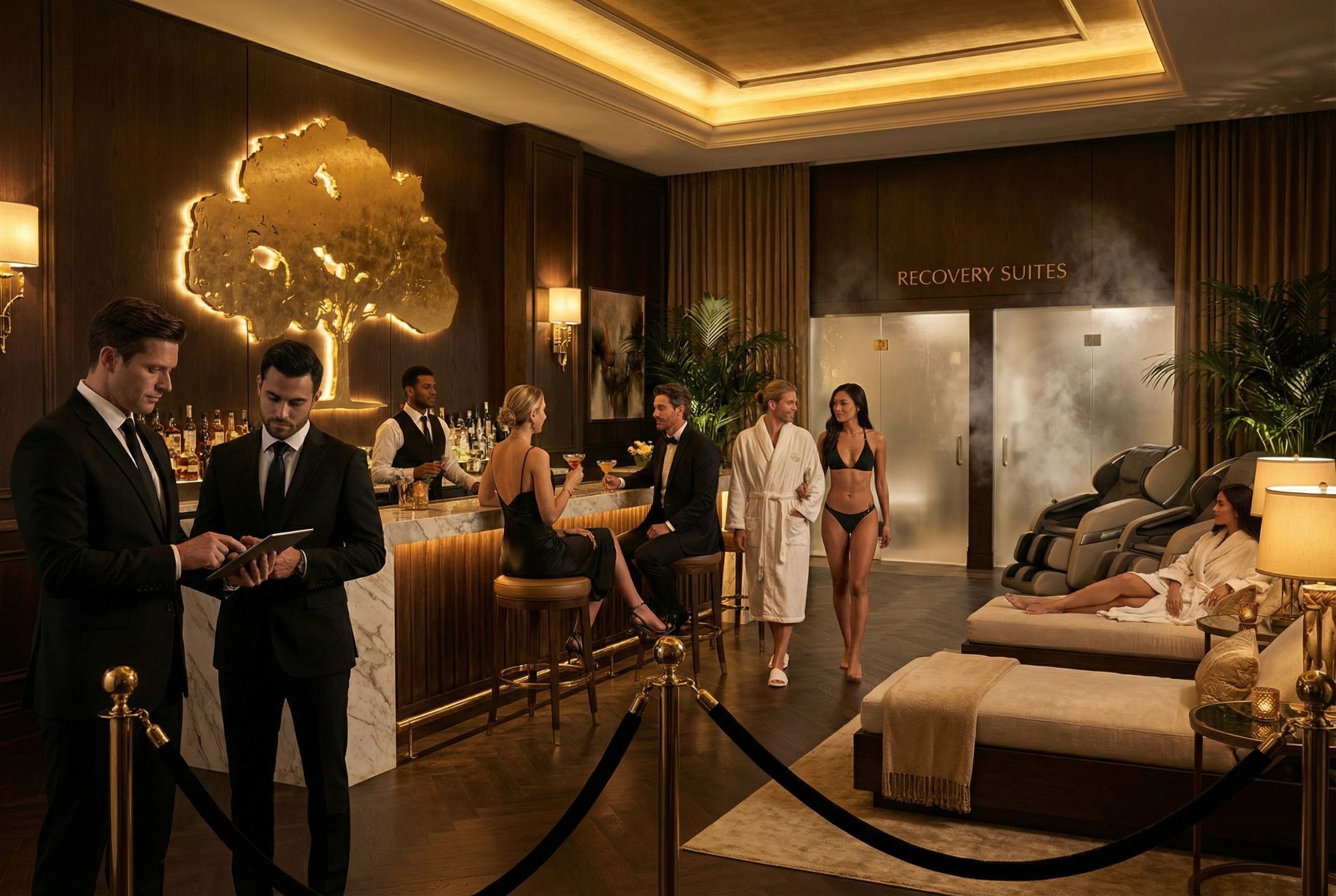 Private nightlife environments where music, atmosphere, and recovery spaces coexist — supported by on-site concierge and controlled guest access.